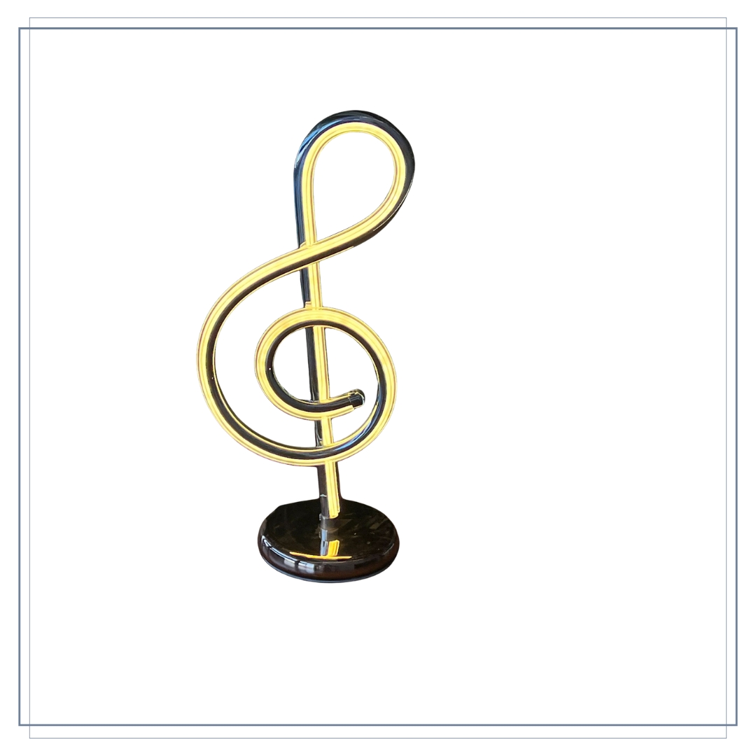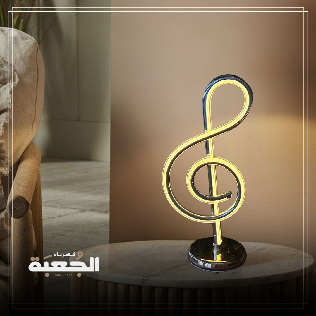 مواصفات الصنف: تيبل لامب مميز بشكل النغمة الموسيقية لاستخدامات عديدة مثل الصالون وغرفة المعيشة