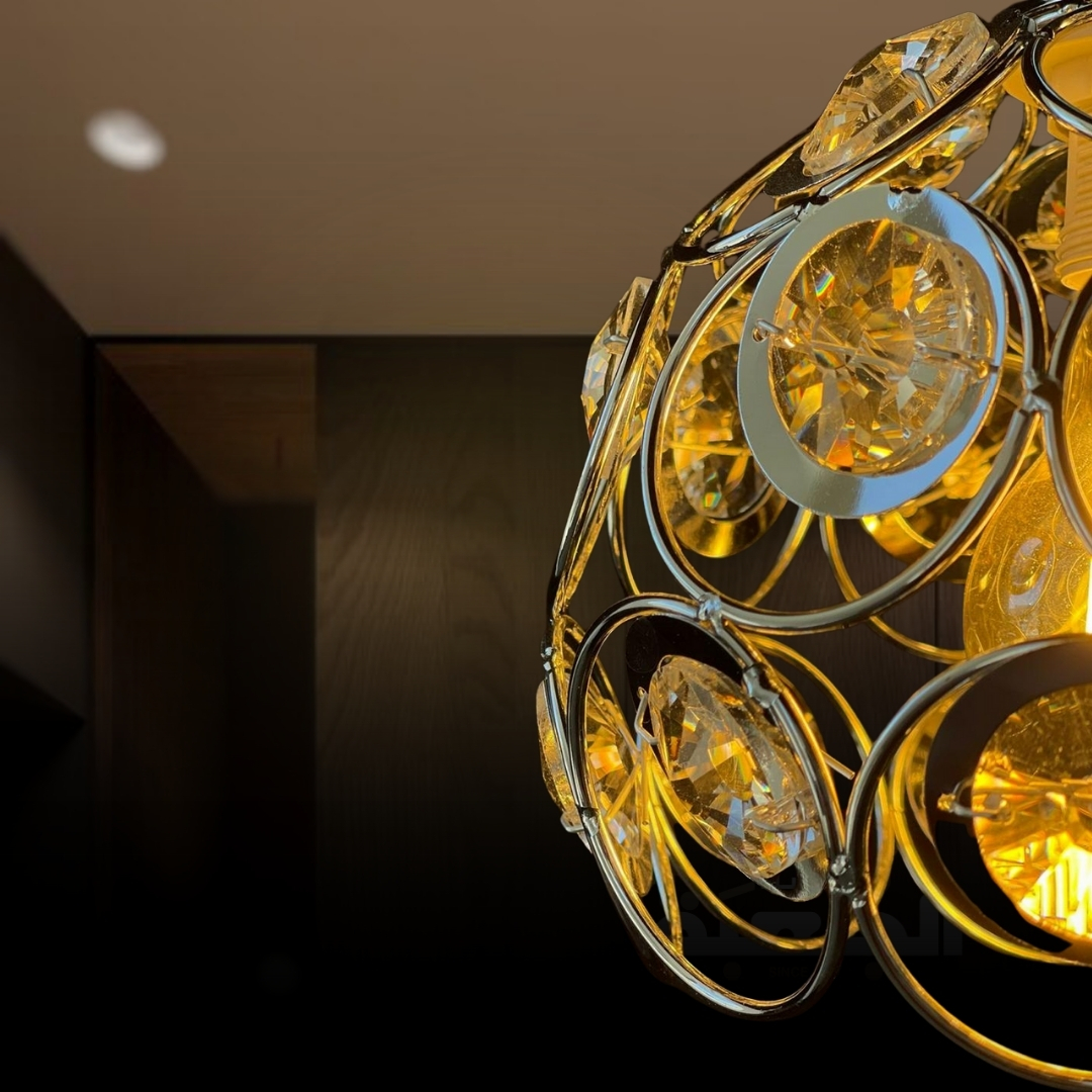 مواصفات الصنف:معلقة بهيكل معدني مع حبات الكريستال الدائرية بتصميم معاصر