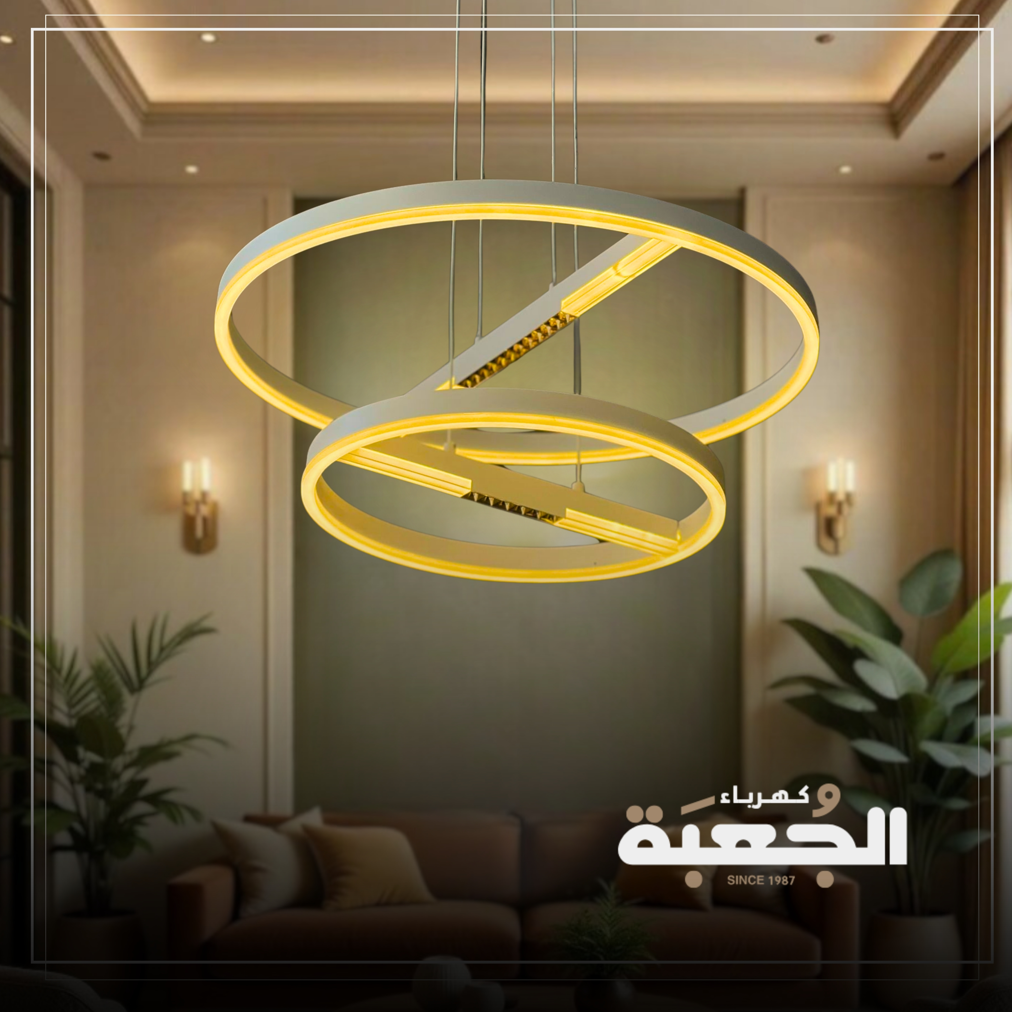 مواصفات الصنف: ثريا ليد حلقات بتصميم حديث وأنيق مع قاعدة مضيئة