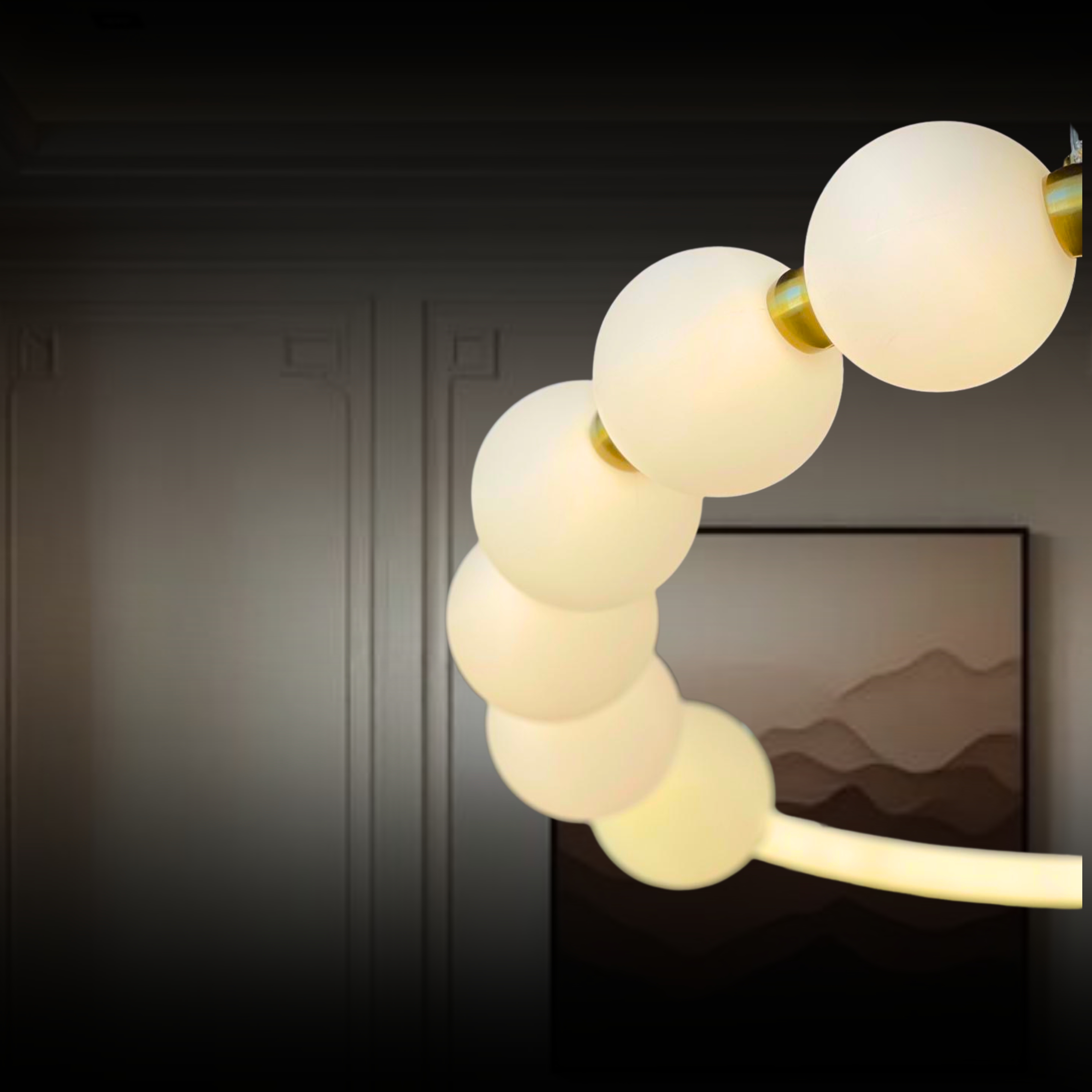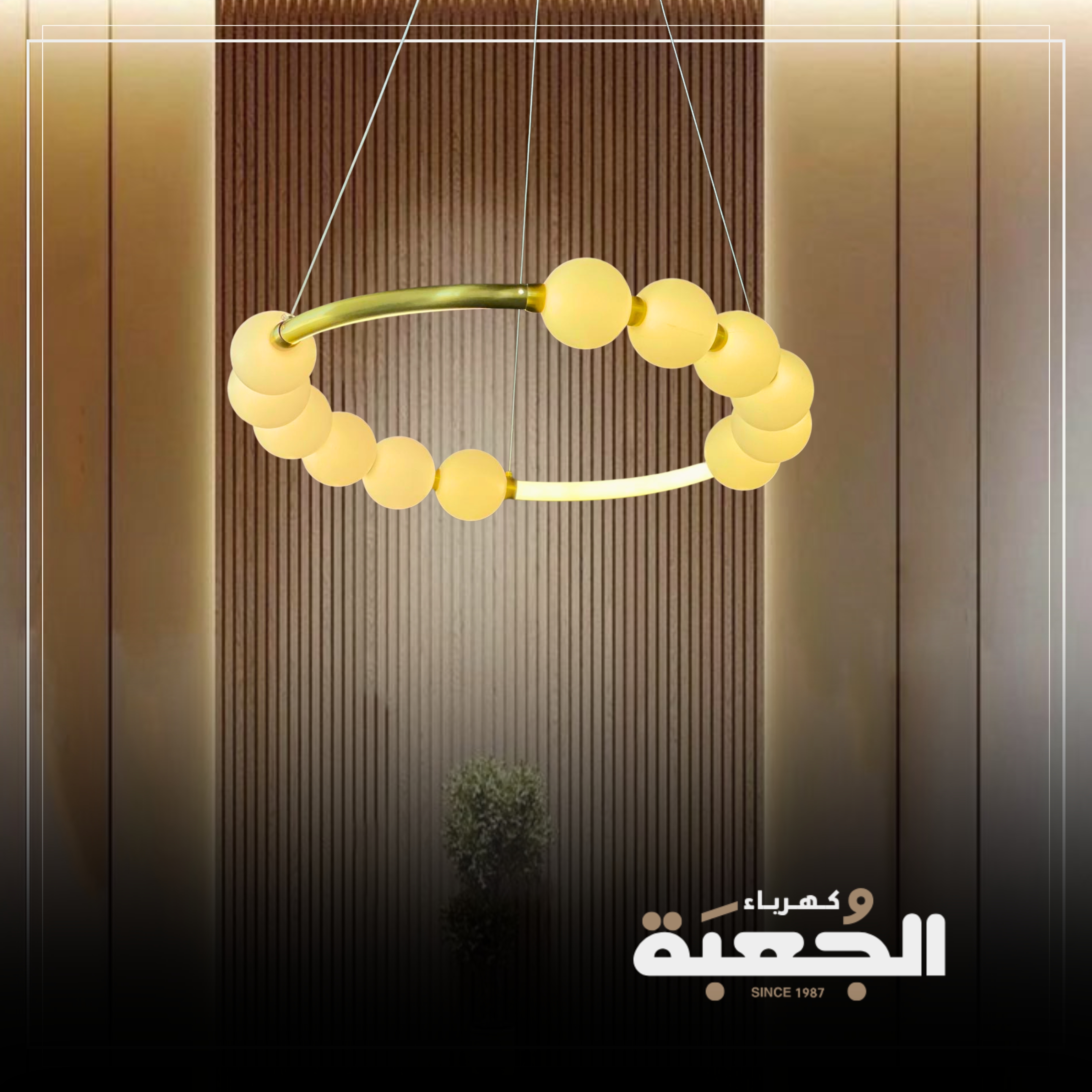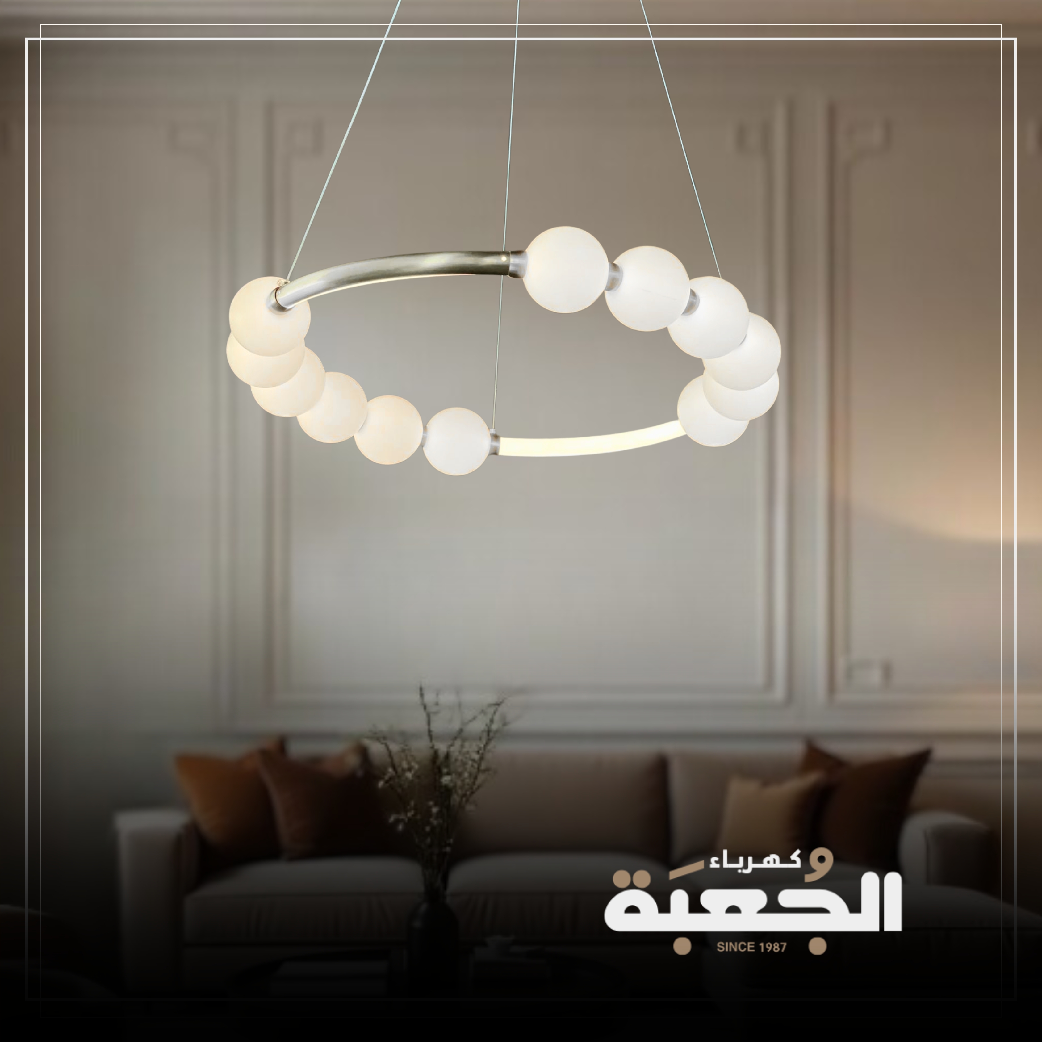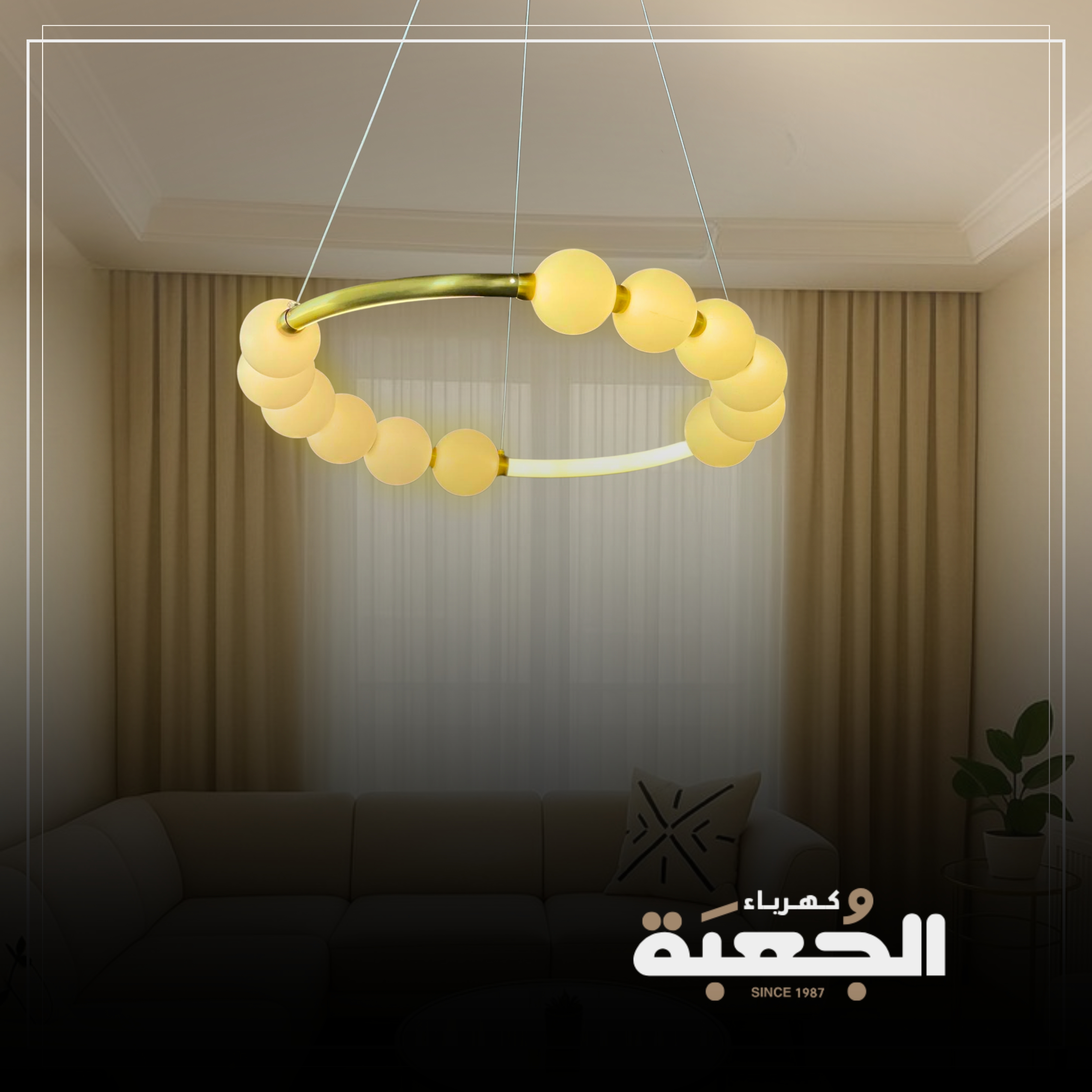 مواصفات الصنف: ثريا ليد حلقة بزجاج مضيء يجمع التصميم الكروي مع الدائري