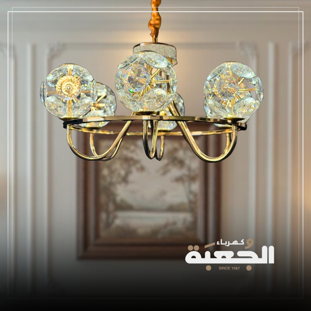 مواصفات الصنف : ثريا كريستالية فخمة ستة أذرع بطابع حديث ومعاصر