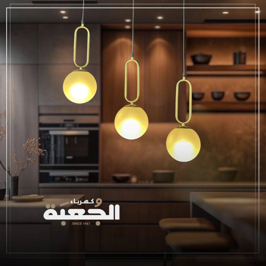 مواصفات الصنف: معلقة ثلاثية ذهبية بتصميم موديرن تستخدم في عدة اماكن مثل جزيرة المطبخ