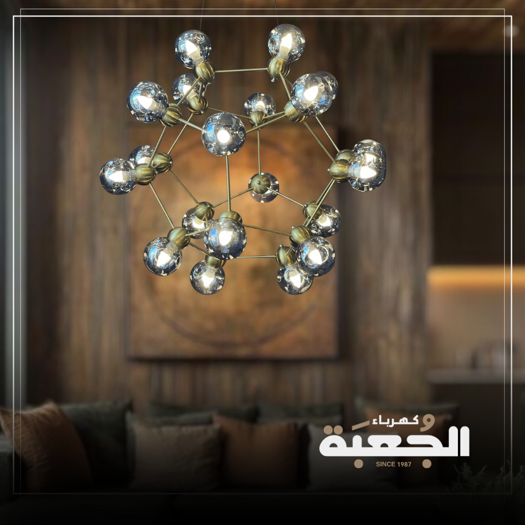 مواصفات الصنف : ثريا مودرين مضلعة ممزوجة بلمسات زجاجية بتصميم حديث تضفي جمالية للمكان
