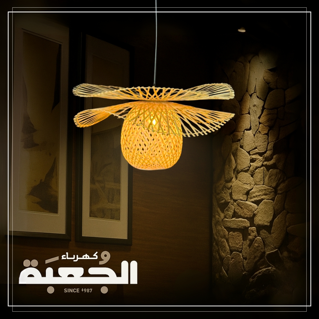 ثريات خشبية وقش