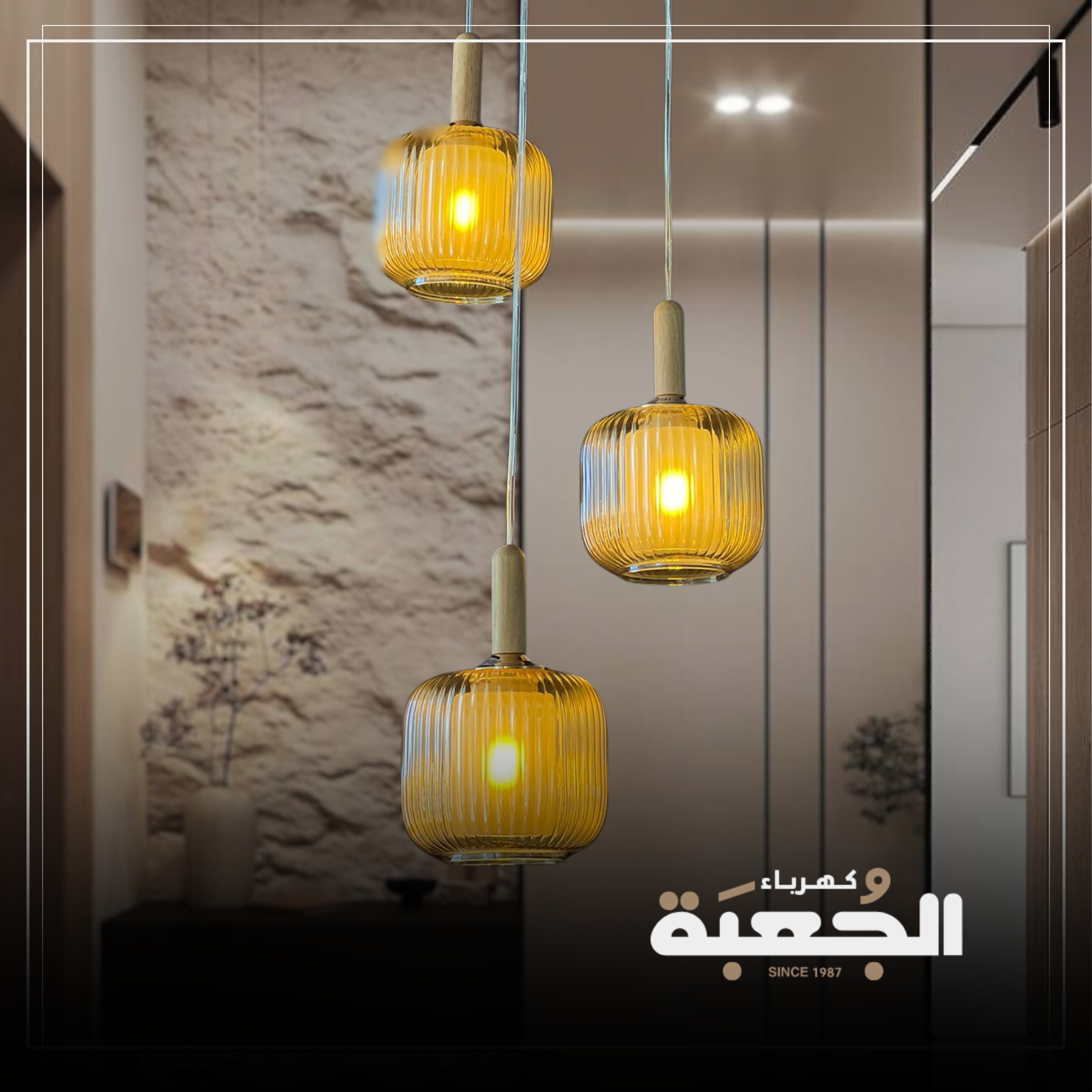 مواصفات الصنف:معلقة ثلاثية باللون العسلي الزجاجي الفريد من نوعه بشكل ملفت