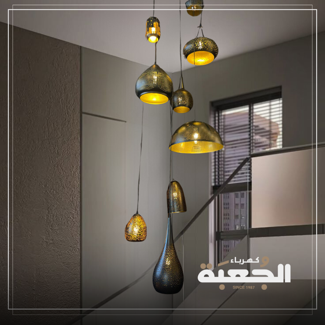 مواصفات الصنف: معلقة درج من 9 وحدات بأشكال مختلفة وفريدة مع زخارف مميزة ومطلي باللون الذهبي من الداخل