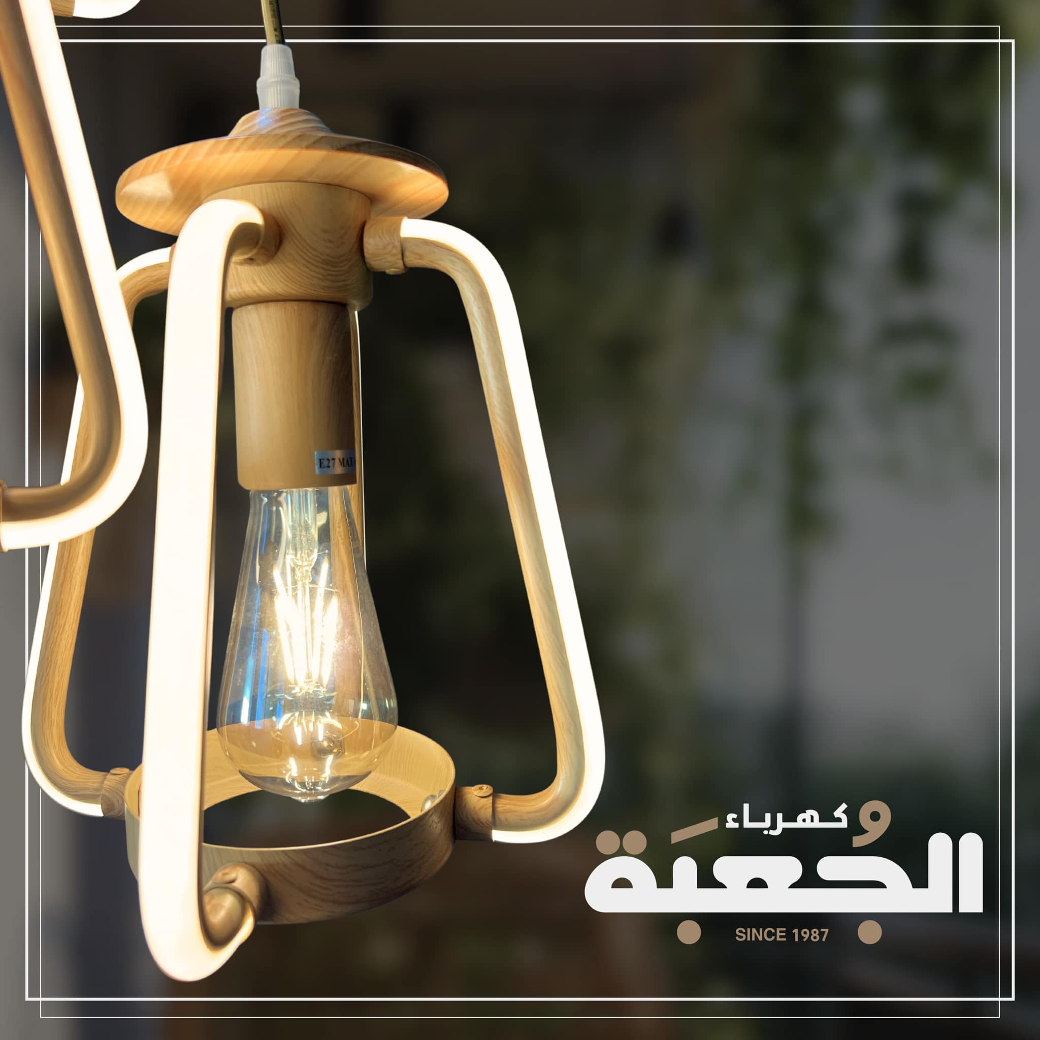 مواصفات الصنف : معلقة ليد ثلاثية خشبية مع لمبة بالوسط بتصميم ناعم ومميز