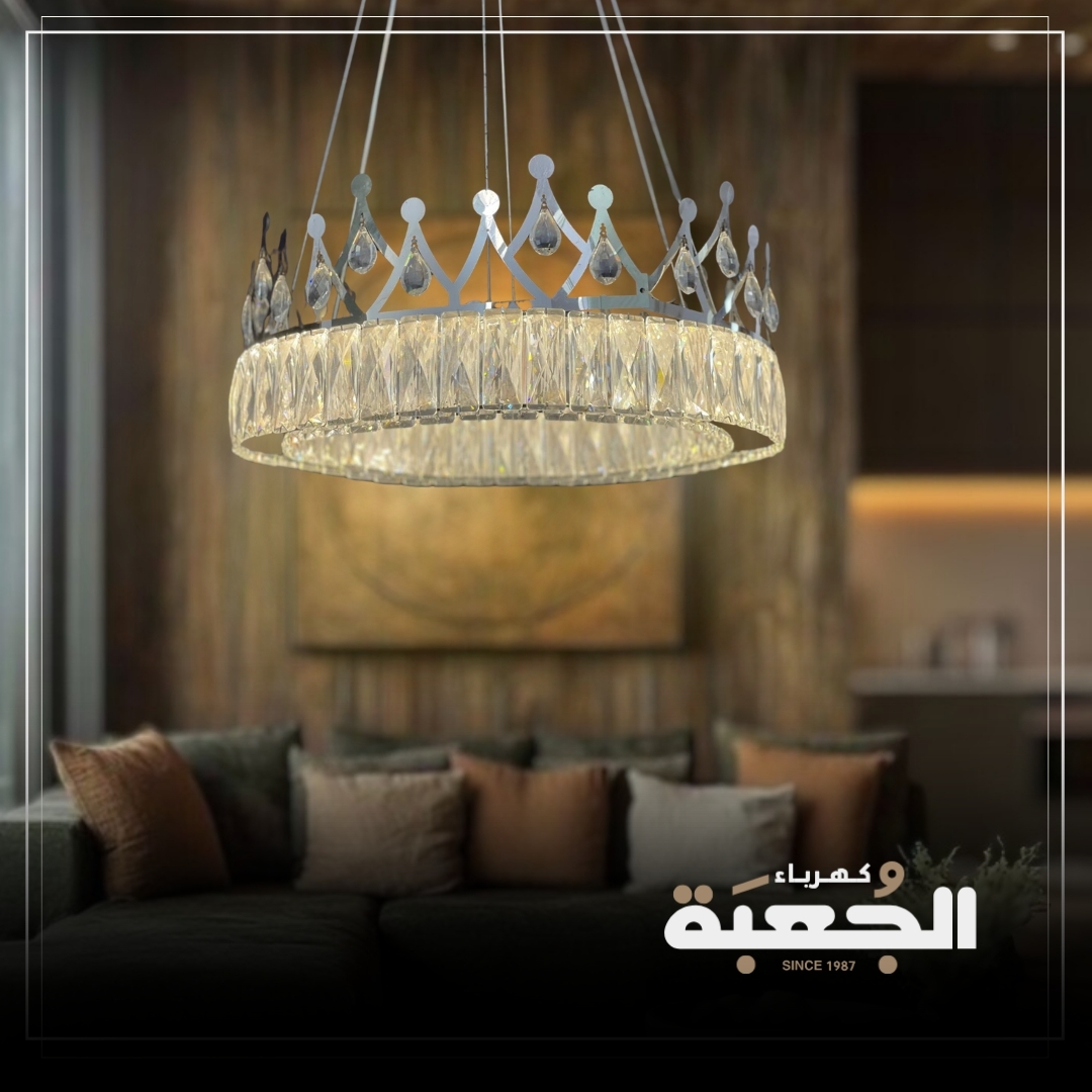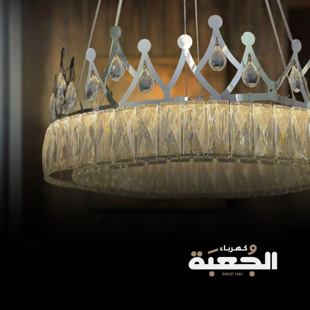 مواصفات الصنف : ثريا كريستال ليد بشكل تاجي مميز - تحتوي على زخارف انيقة مع لمسة كريستالية