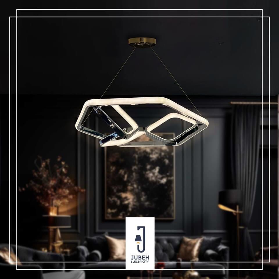 مواصفات الصنف : معلقة ليد حلقات مضلعة ومتداخلة بشكل حديث وانيق