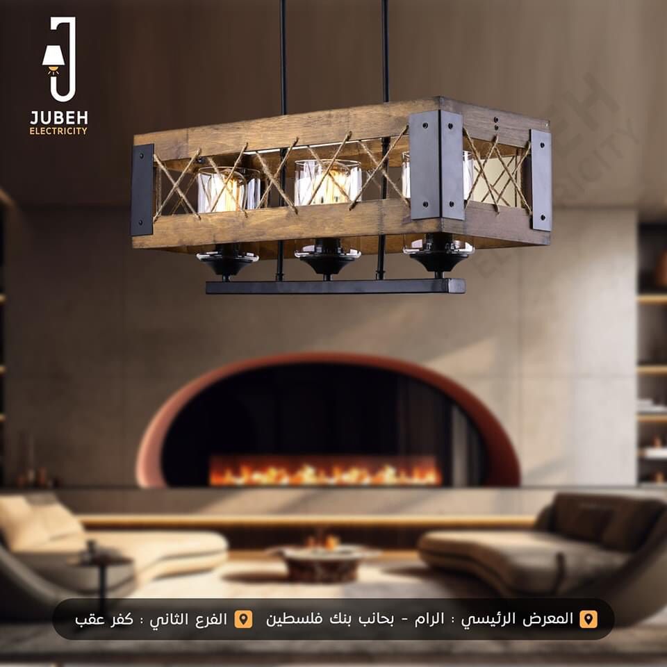 مواصفات الصنف : ثريا خشبية طولية مع تصميم معدني وحبل خيش على الاضلاع شكل X