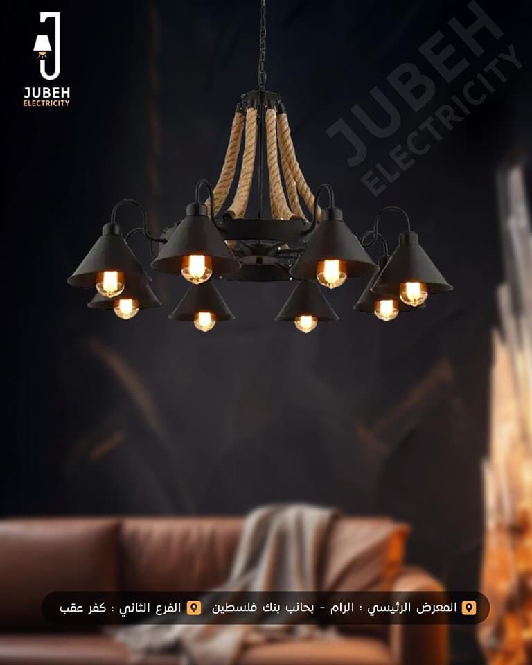 مواصفات الصنف : ثريا حبل خيش مع تصميم وحدات معدنية مخروطية عدد ثمانية
