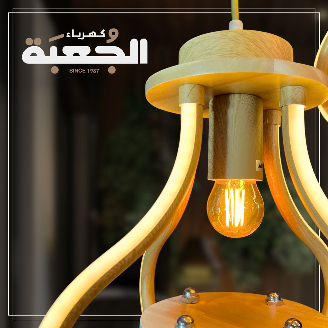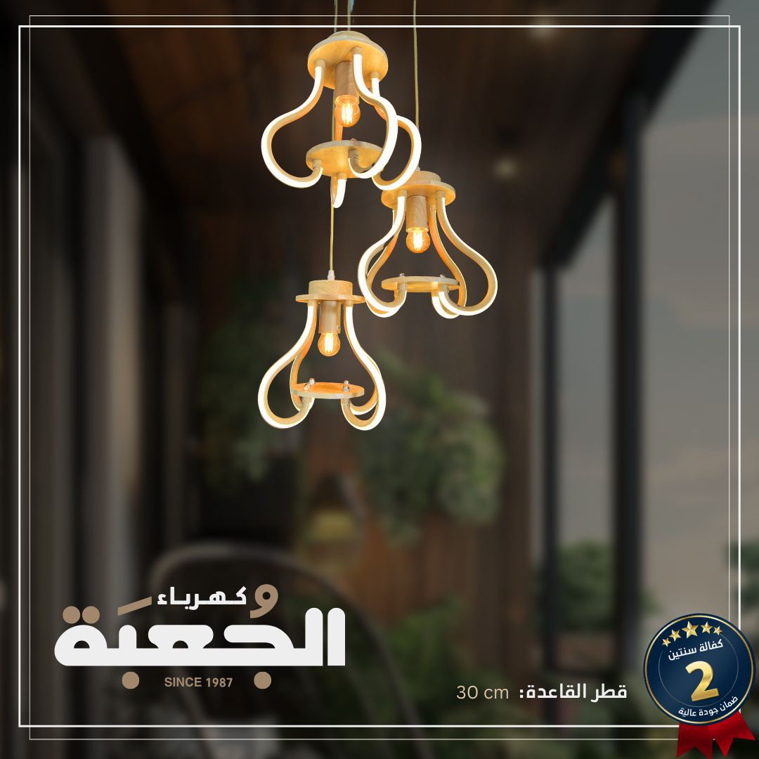 معلقة ليد ثلاثية خشبية مع لمبة بالوسط بتصميم ناعم ومميز