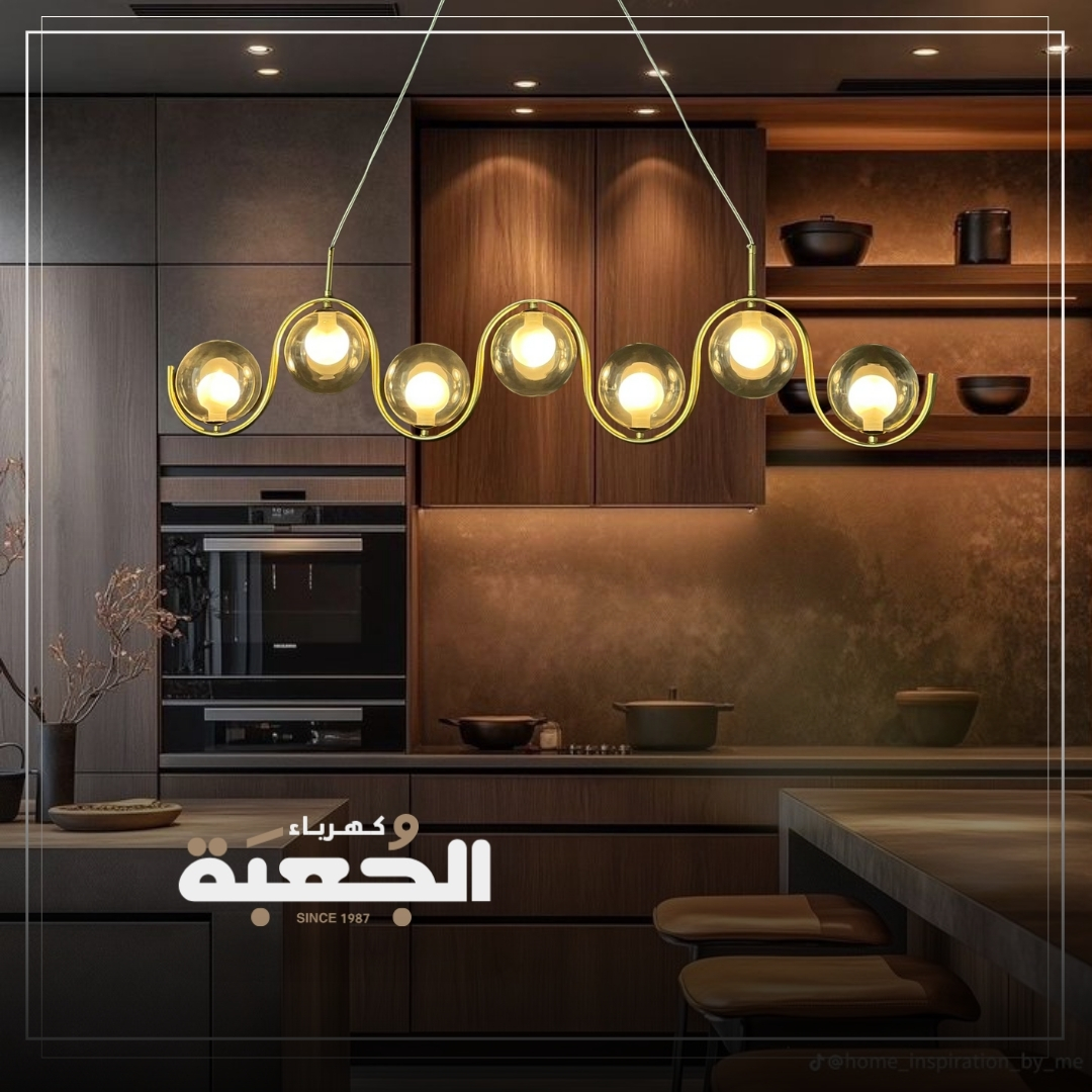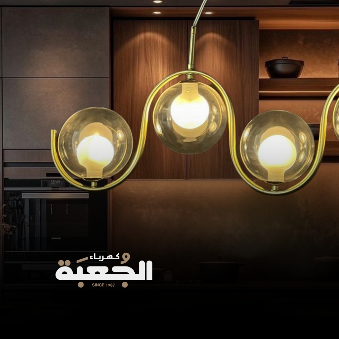مواصفات الصنف : معلقة موديرن معدنية مع كرات زجاجية شفافة واكريليك بتصميم تستخدم في عدة اماكن مثل المطبخ