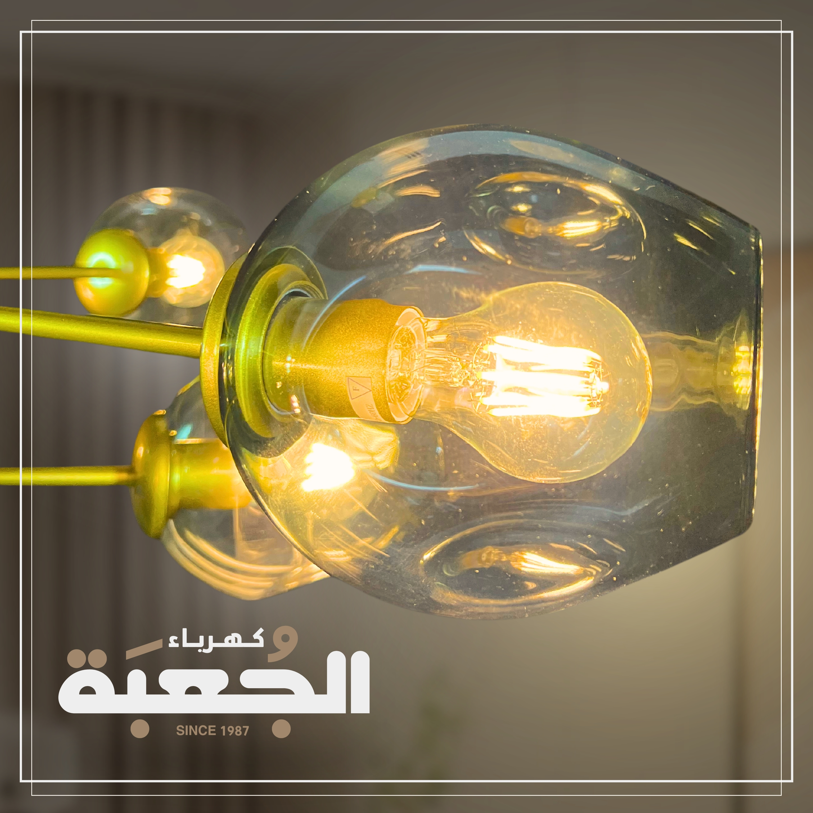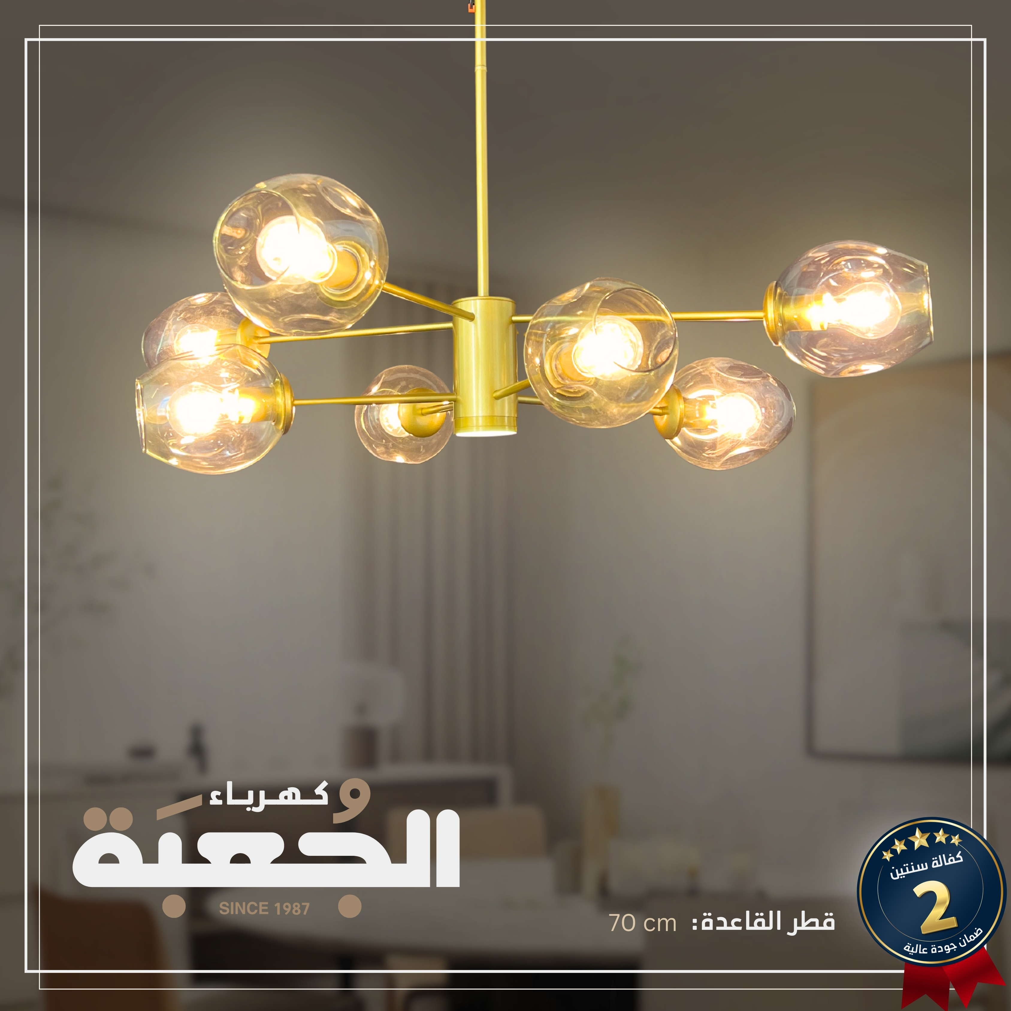 مواصفات الصنف : ثريا ذهبية مع كرات زجاجية بتصميم جميل ومعاصر