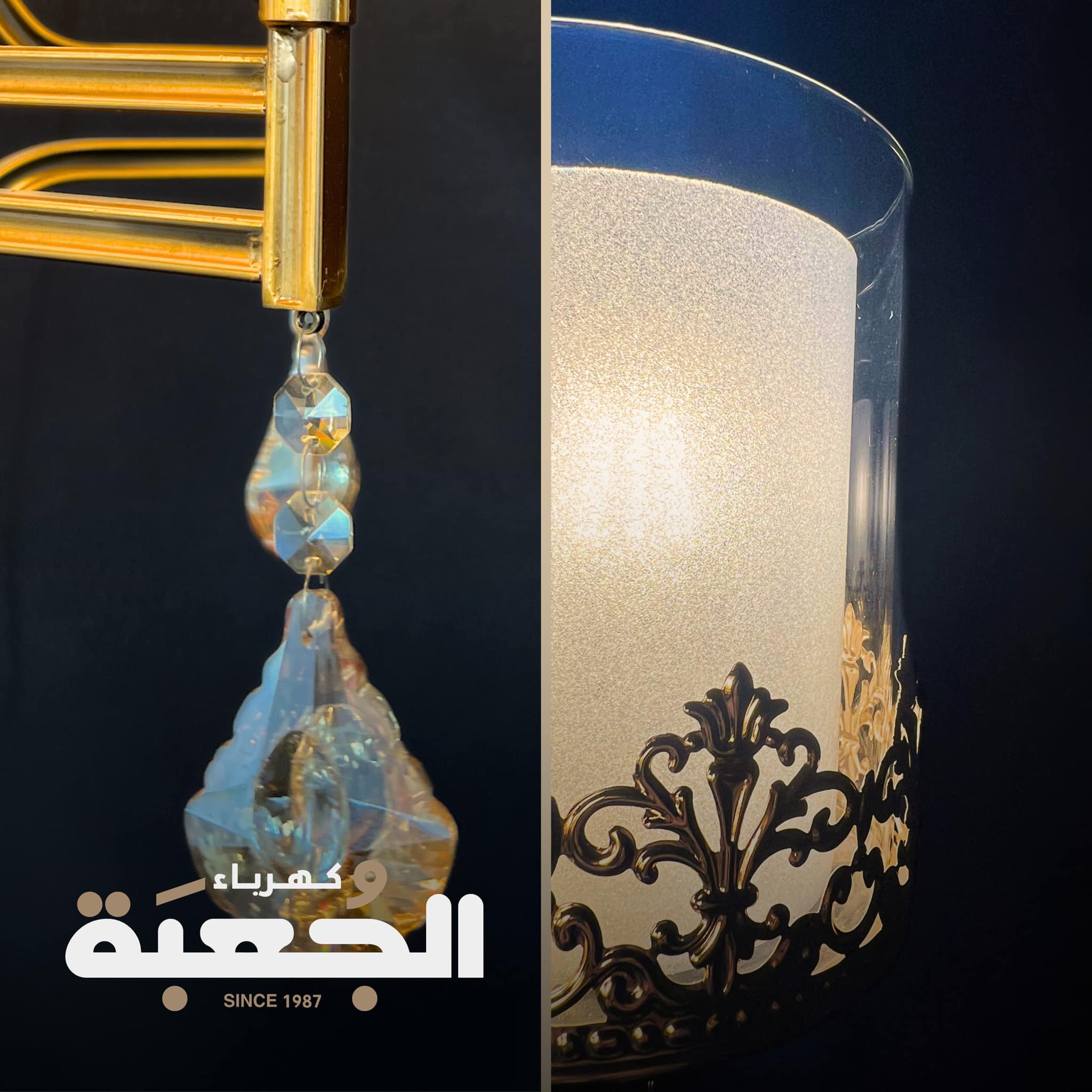 مواصفات الصنف : ثريا تجمع بين الطابع الكريستالي والكلاسيكي تحتوي على 3 أذرع مع زخارف مصممة بشكل معاصر