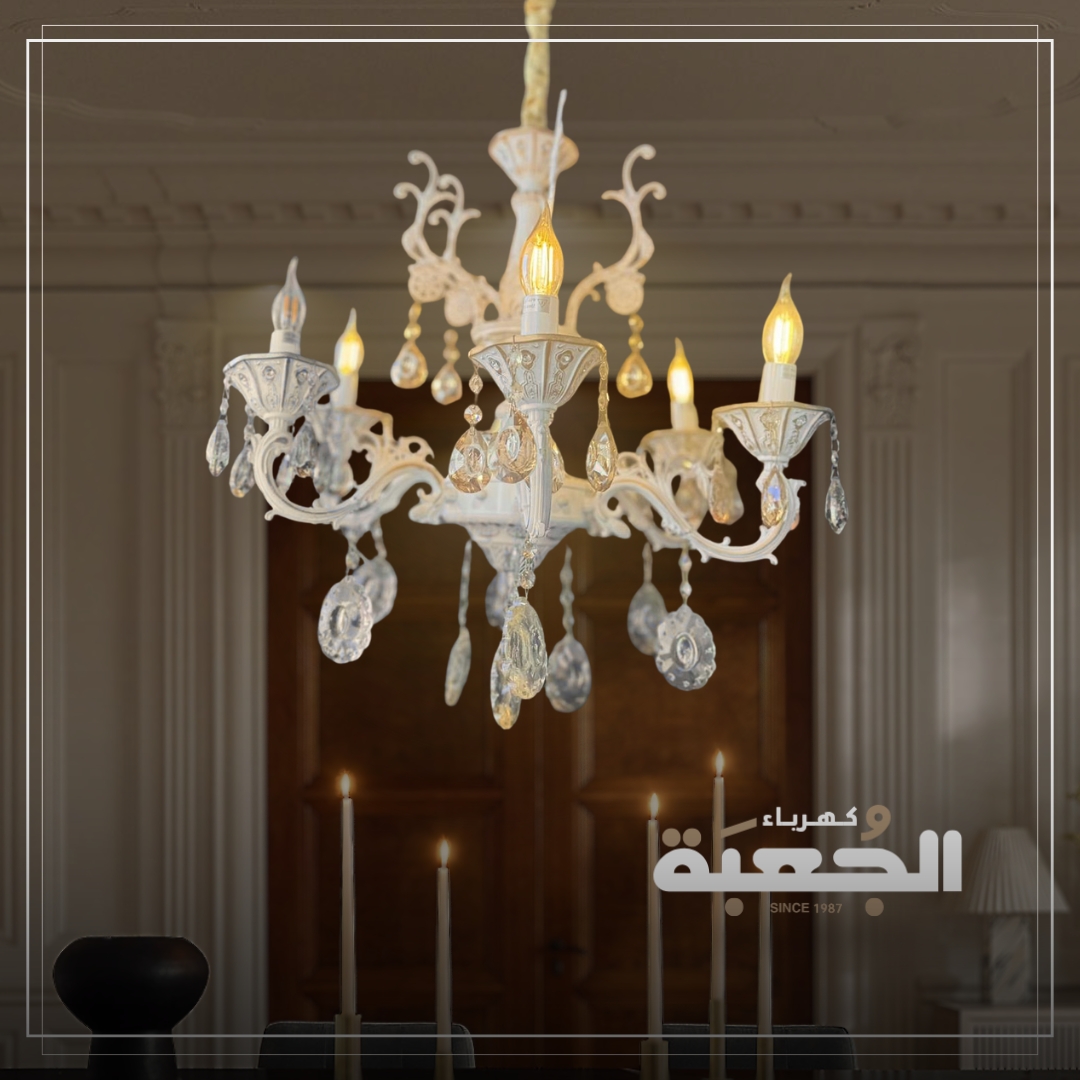 مواصفات الصنف : ثريا كلاسيكية من المعدن الابيض والذهبي الانتيكا تضفي لمسة مميزة ونادرة الى المكان مع حبات كرستالية ذهبية
