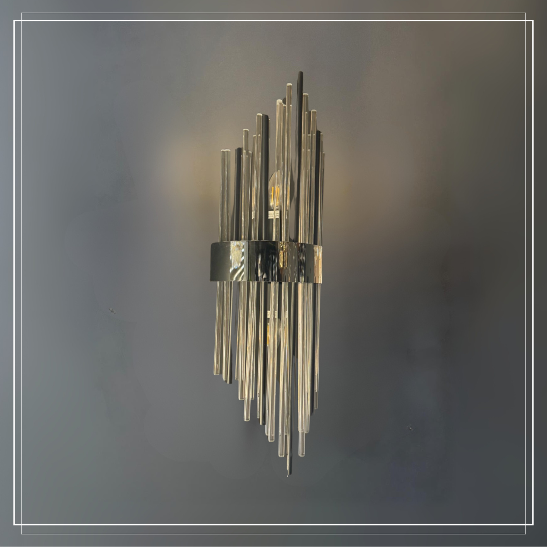 مواصفات الصنف : جنب كريستالي من حبات كريستالية طولية مع اكسسوار أسود ، يستخدم في عدة أماكن مثل الصالون