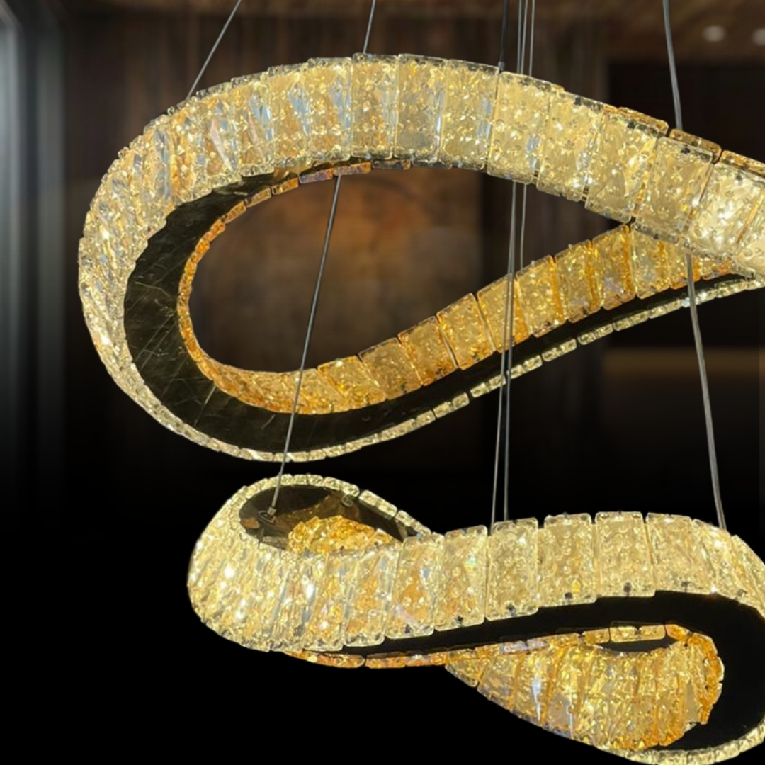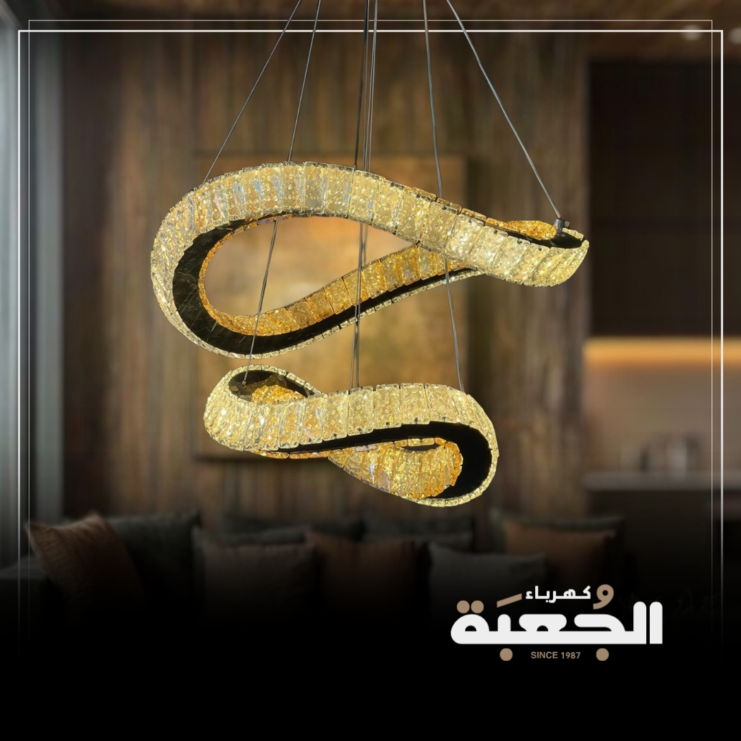 مواصفات الصنف : ثريا كريستال من حلقتين دائرتين معكوفة بشكل متداخل - تحتوي لمسات كريستالية باللون الذهبي والفضي تعطي طابع الفخامة الى المكان