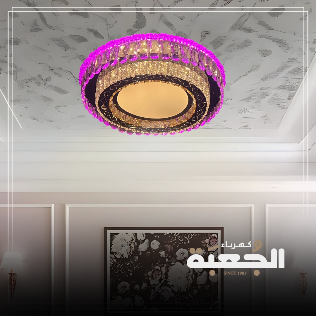 الانارة :60 واط// CCT( اللون الاصفر الذهبي , الابيض الدافئ, الابيض), تتميز ايضا بوجود انارة ملونة (اللون الزهري)