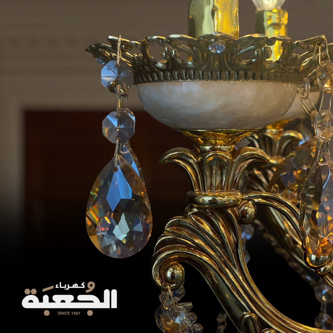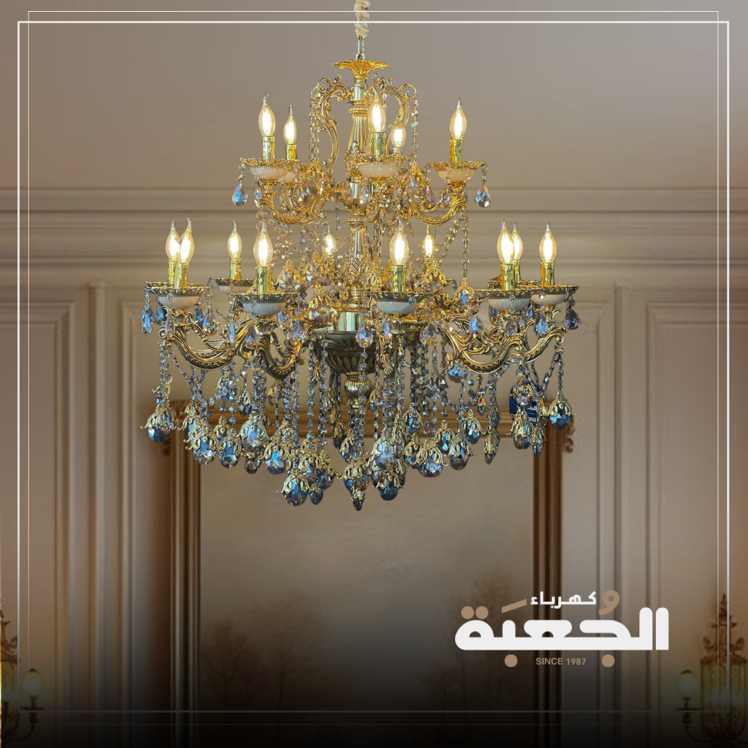 مواصفات الصنف : ثريا كلاسيكية فاخرة من طبقتين تضفي الفخامة الى المكان بالاضافة الى تفاصيل اذرع لا مثيل لها من حجر المورانو ( حجر طبيعي) والكريستال تحتوي على 15 لمبة