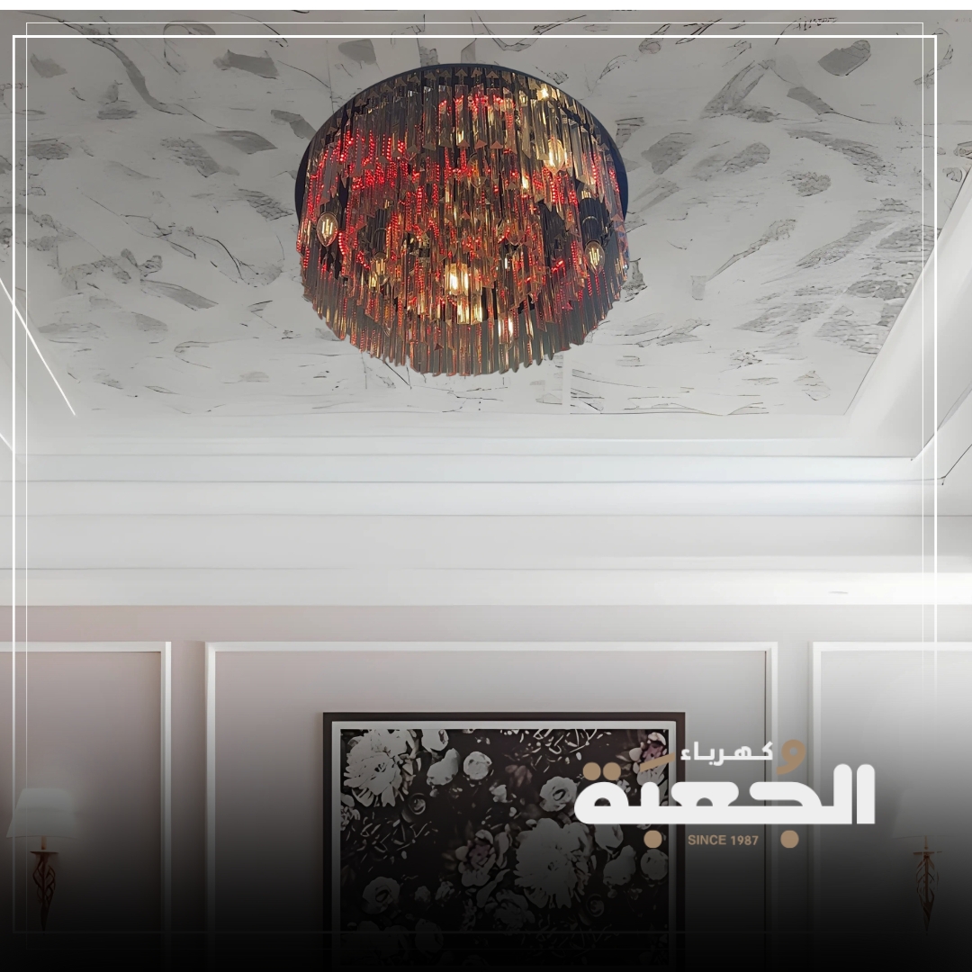 مواصفات الصنف : ثريا كريستالية بلورية مميزة باللون الاسود ثابتة بالسقف مع قاعدة دائرية الشكل , تستخدم في عدة أماكن مثل الصالون تضفي روح وحياة للمكان الذي تكون فيه.