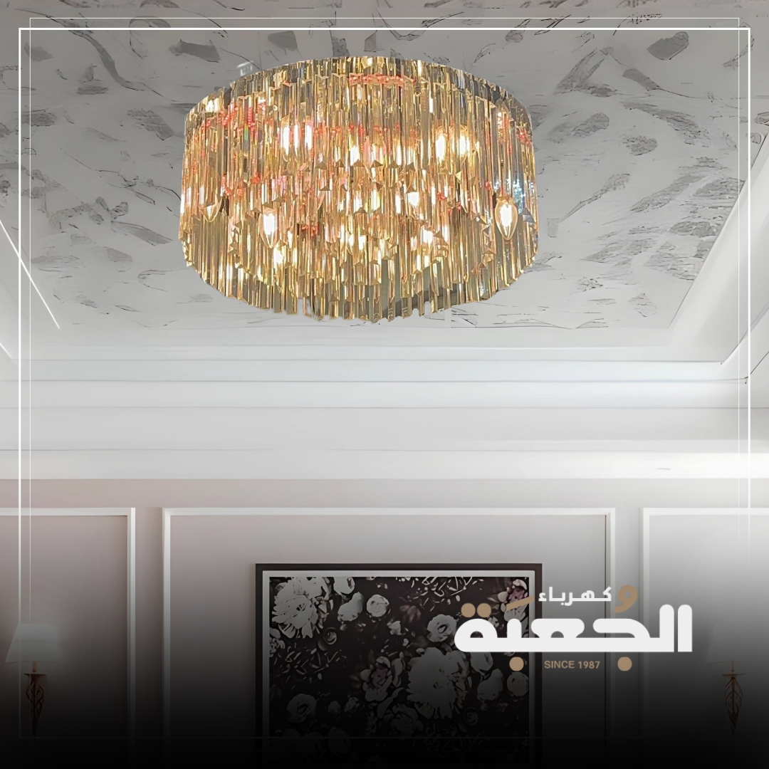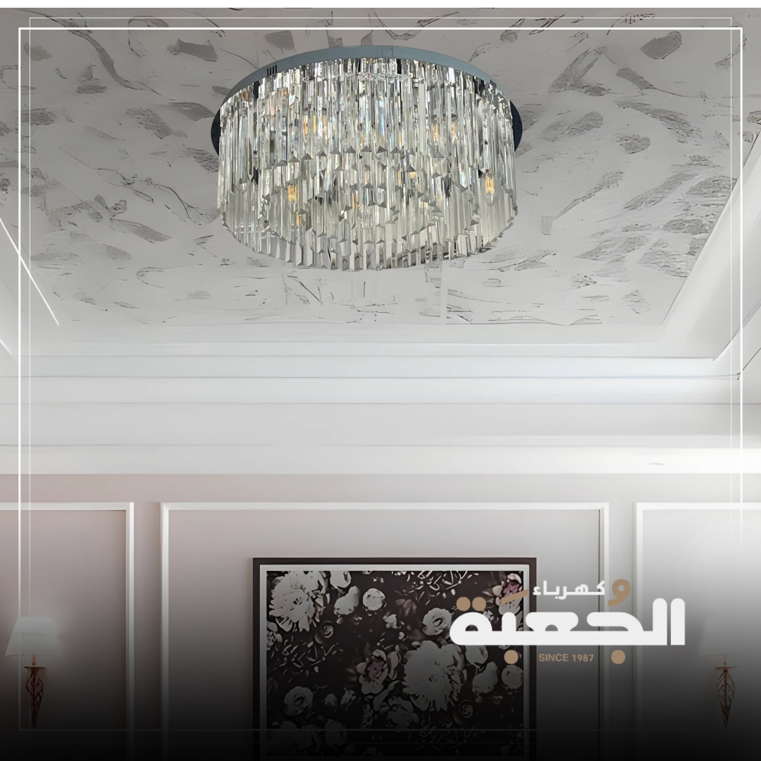 مواصفات الصنف : ثريا كريستالية بلورية مميزة باللون الشفاف ثابتة بالسقف مع قاعدة دائرية الشكل , تستخدم في عدة أماكن مثل الصالون تضفي روح وحياة للمكان الذي تكون فيه.