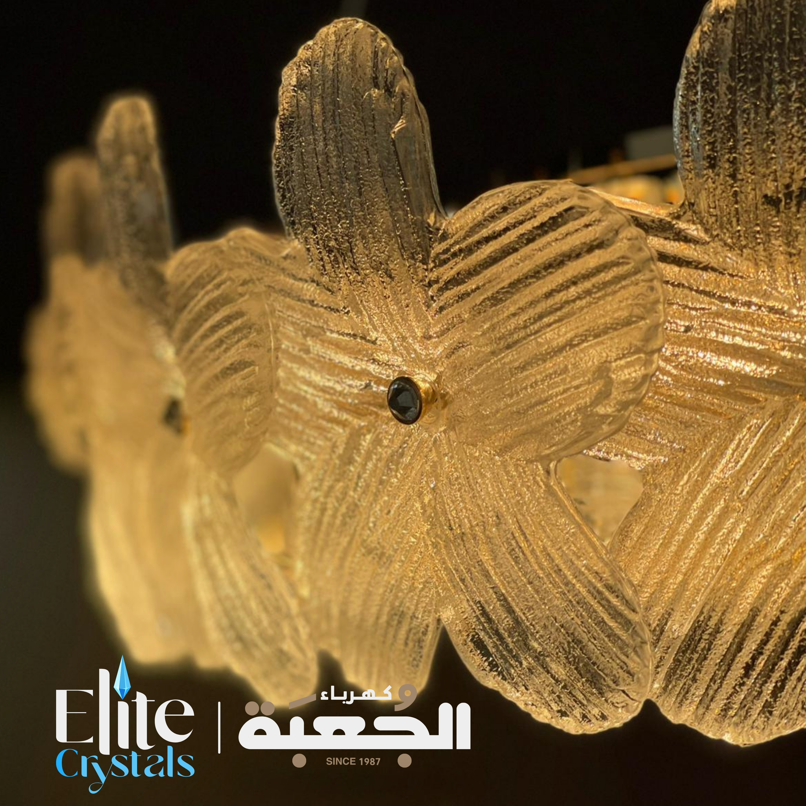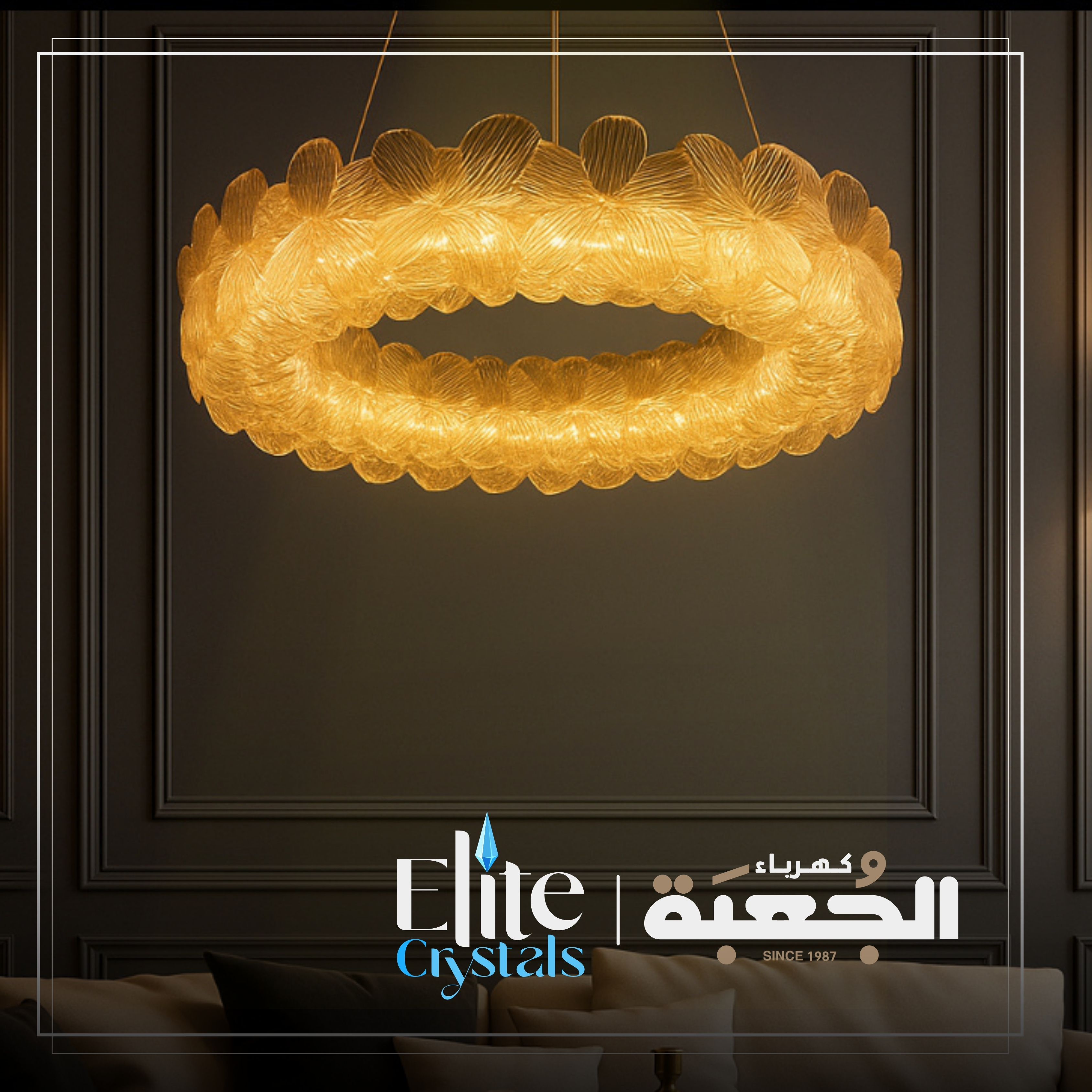 مواصفات الصنف : ثريا كريستال دائرية بشكل وردي زجاجي, تصميم حديث يجمع الاناقة والحداثة