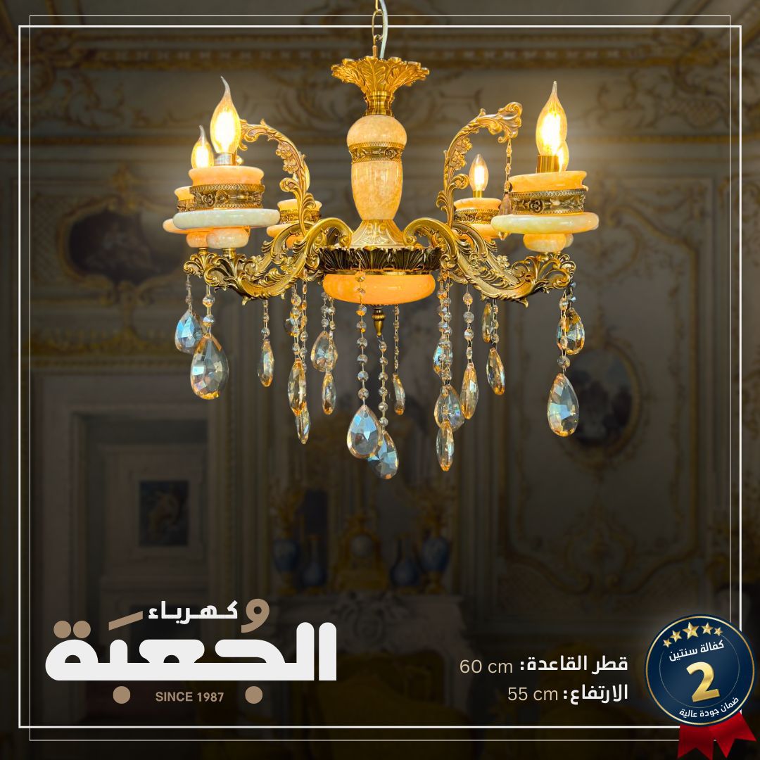 مواصفات الصنف : ثريا حجر المورانو ( حجر طبيعي) تحتوي على 6 لمبات نوعية E14